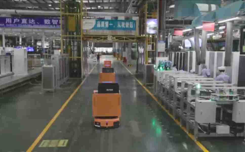 为车载冰箱物流配送打造的智能解决方案,,,包含产中物流通过潜伏举升AMR搬运至线边,,,产后成品物流智能仓储,,流程包含产中物流智能齐套入库,,,,线边安灯叫料AMR智能配送至线边,,,,成品入库、、、、出库,,通过无人堆高车机器人,,,,智能仓储管理替代人工作业管理,,实现更高存储、、、更高效率、、更具柔性化的解决方案。。。。